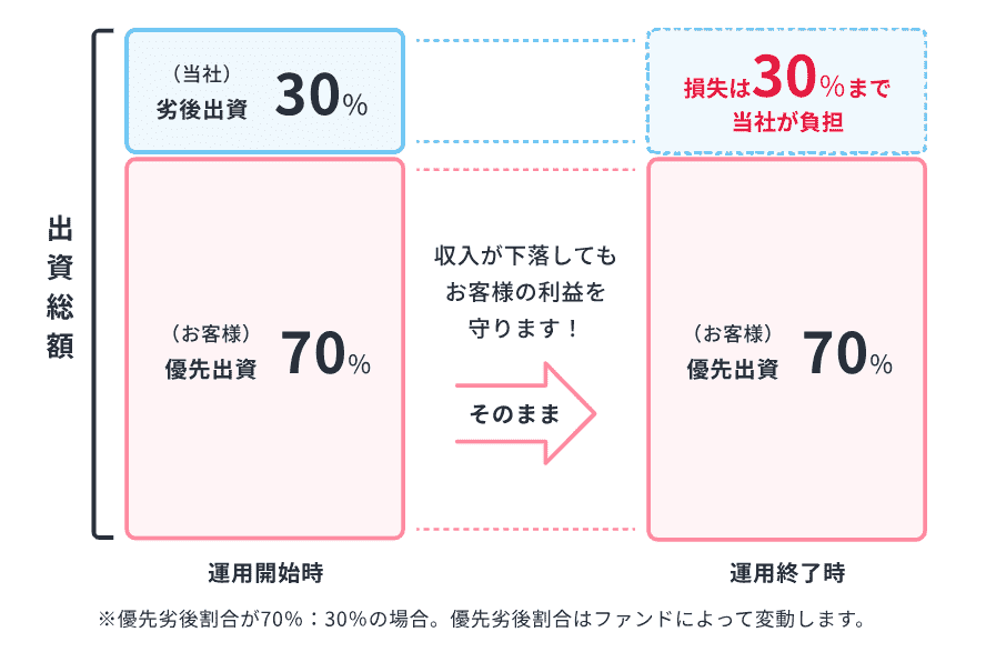劣後出資割合が高いほど、投資家の安全性も高まるってことだよ♪