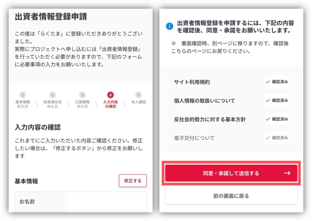 入力内容の確認をして問題がなければ「同意・承諾して送信する」をタップ。